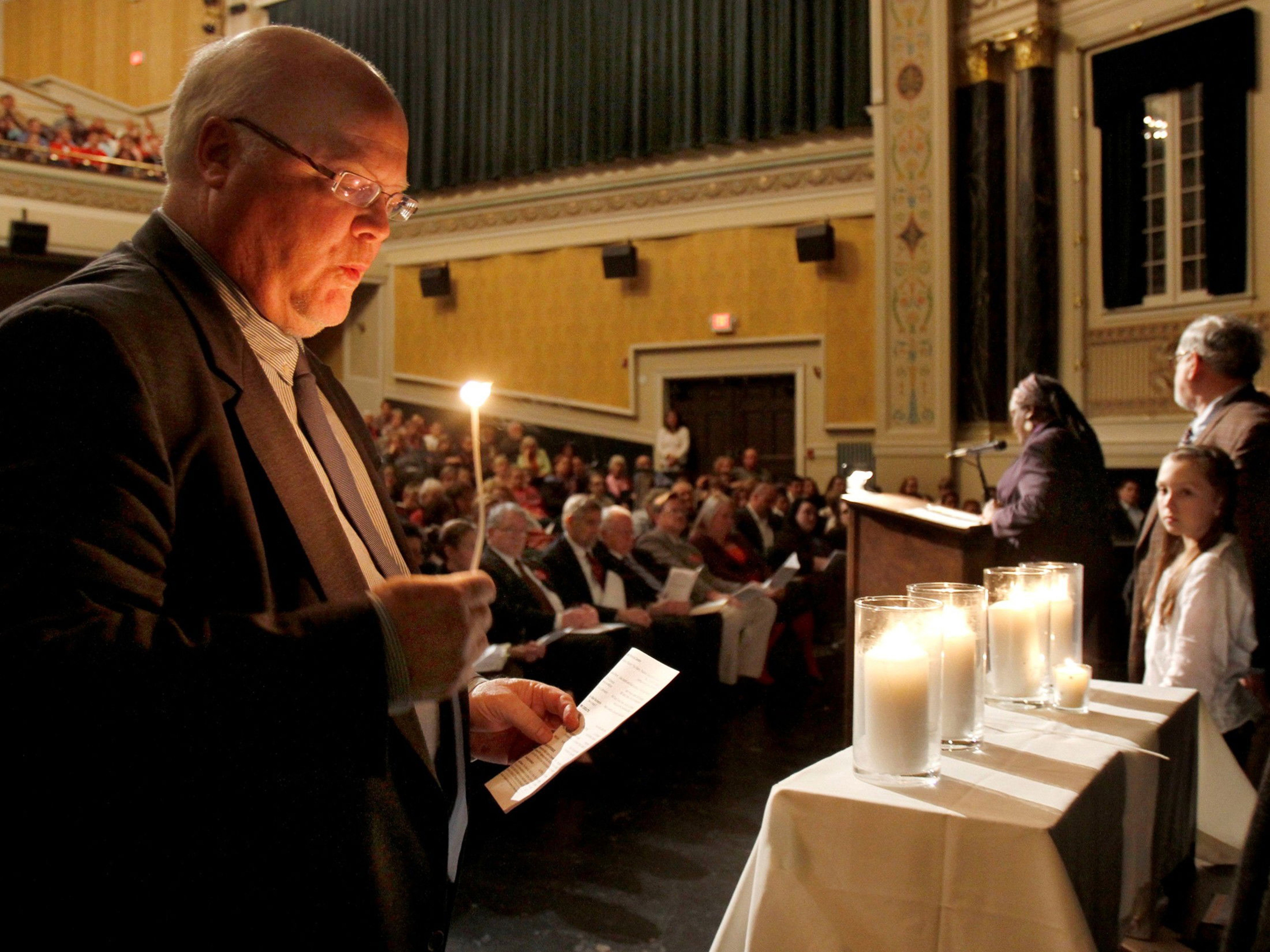 "We remember that night as a moral obligation to the victims and the survivors as well as for ourselves, for the sake of our children, and for our community. We recognize our responsibility to care for others in our midst who might be overlooked, targeted, or victimized in their circumstances. We remember so that individuals may refuse to become perpetrators, 'bystanders' or collaborators. We remember in the hope that present and future generations take responsibility for building a world free of antisemitism, bigotry, intolerance, and hate. Therefore, we remember Kristallnacht to remind ourselves to care for one another, to build peace, and be a community in which compassion, respect and justice thrive".
