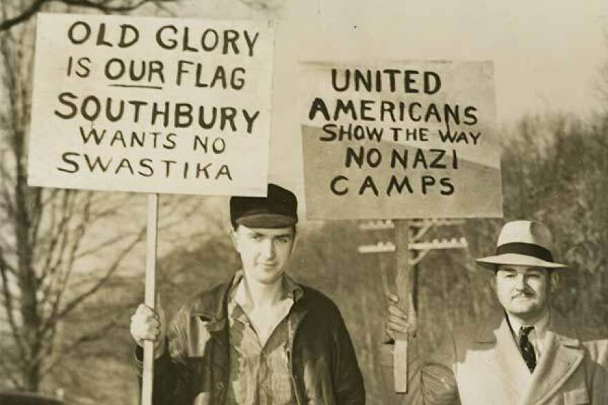 Resisting the Bund In 1937, Kuhn’s German American Bund tried to establish a Hitler Youth-type training camp in Southbury, CT. Kuhn stated: “The principles of the Bund and the KKK are the same”. How did the people of Southbury respond? How did they meet the challenge? Rev. M. Edgar N. Lindsay was one of two pastors who used the Sunday before Thanksgiving to preach about the Nazi “menace”. The Southbury churches rallied behind their neighbors and demonstrated peacefully, and through zoning regulations, prevented a Bund camp from being built. Southbury is about 25 miles from Yale University where the America First Committee (AFC) began. Peaceful protests have strength!