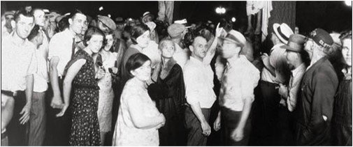 In 1930, a lynching took place of two black American teenagers in Marion, Indiana. It was one of the few lynching outside the deep South, so it was a boon for white supremacists and racists to argue that this is a common American practice. Note: I have cropped the top of the original photograph that showed two American black teenagers hanging.